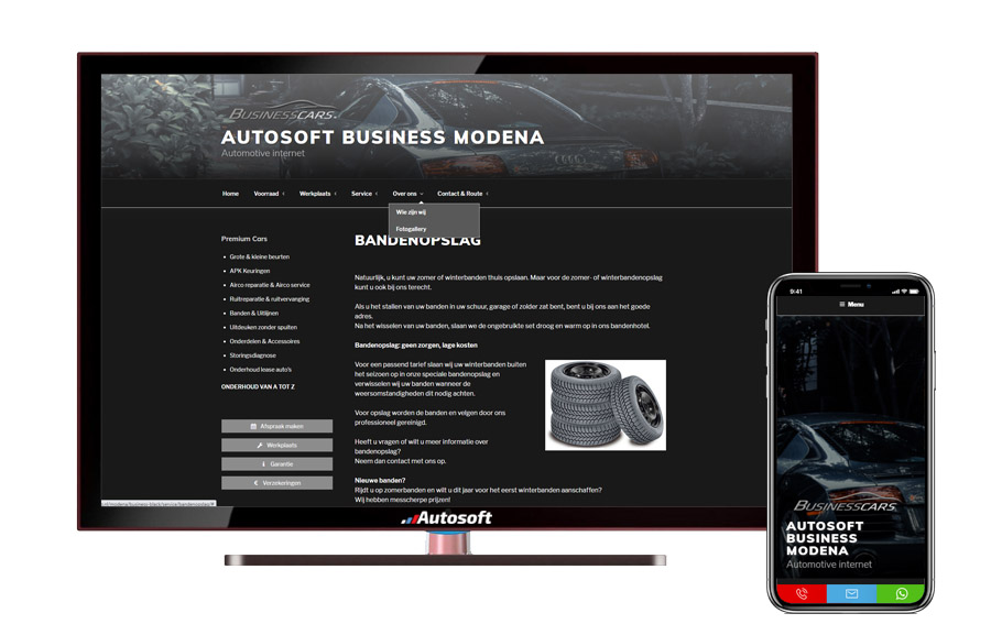 | Functionaliteit Websites | Mobiel geschikt (responsive), Google geoptimaliseerd, Social media geïntegreerd, Auto van de week, Opmaak in eigen huisstijl, Incl. domeinnaam/e-mail, Persoonlijke support, Website leasen (i.p.v. kopen) |